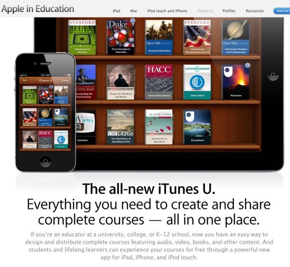 Link to Apple iTunes U. 800 institutions and 70,000 items plus a new book publishing app iBooks Author.